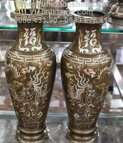 Lọ Hoa bằng đồng chạm Rồng Phượng