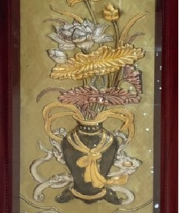 Tranh Bình Hoa Cát Tường Khung Gỗ Hương Dát Vàng 9999