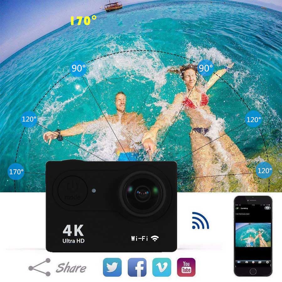 Ống kính góc rộng 170 độ cùng độ phân giải HD 1080P ghi hình, chụp ảnh rõ nét, chất lượng cao. Khả năng chống rung tốt giúp bạn quay lại mọi khoảnh khắc trong khi di chuyển mà không lo bị nhòe mờ.