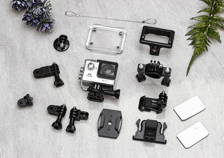 Camera được trang bị đầy đủ các phụ kiện từ vỏ chống nước, gá mũ bảo hiểm, gá cài ghi đông xe đẹp, gá cài xe máy, đeo dây lưng… giúp bạn ghi lại những hình ảnh sống động trong mọi hoàn cảnh.