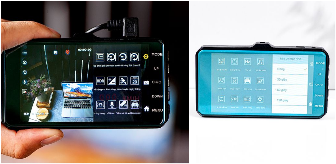 Camera hành trình ô tô A4 ghi hình đồng thời phía trước và sau xe, vừa ghi lại hành trình vừa hỗ trợ lái xe quan sát, đặc biệt là khi lùi xe