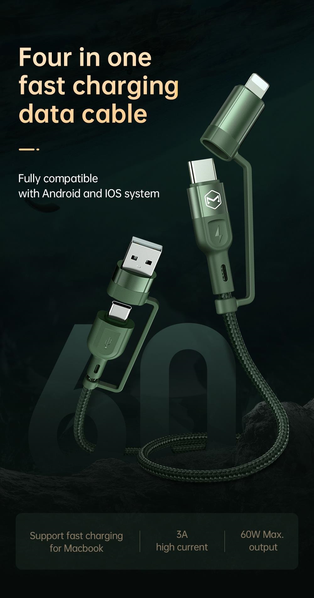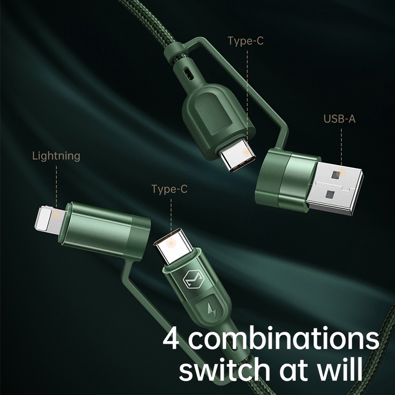 Cáp sạc nhanh Mcdodo với 4 phương thức sạc phù hợp với hệ điều hành IOS, Android, máy tính bảng và máy tính xách tay: