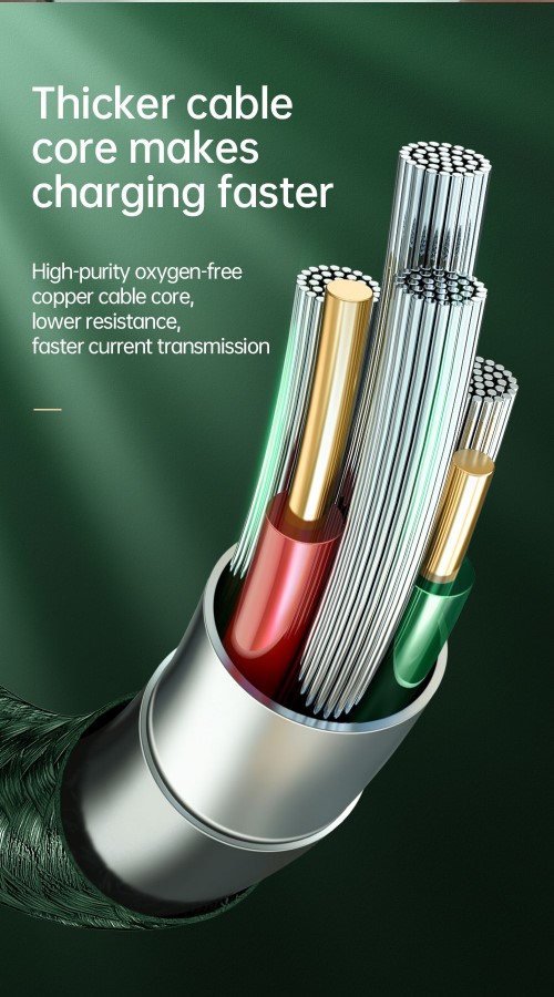 - Lõi cáp dày hơn giúp sạc và truyền dữ liệu nhanh hơn, lõi cáp đồng có độ tinh khiết cao, điện trở thấp.