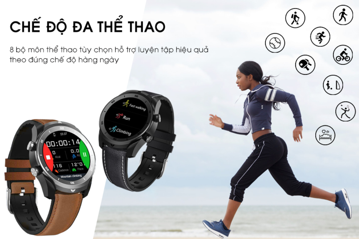 Đặc biệt là các chế độ thể thao đa dạng với 8 bộ môn đi bộ, chạy, đạp xe, leo núi, bóng bàn, bóng rổ, bóng đá, cầu lông, giúp bạn theo dõi quá trình tập luyện hiệu quả, chính xác hơn, tăng thêm cảm hứng tập luyện.