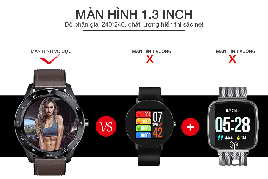 Đồng hồ thông minh DT98 sở hữu màn hình vô cực tuyệt đẹp, hiển thị sắc nét với kích thước 1.3 inch, cảm ứng cực nhạy và nhiều chế độ hiển thị đa dạng cho bạn thay đổi phong cách.
