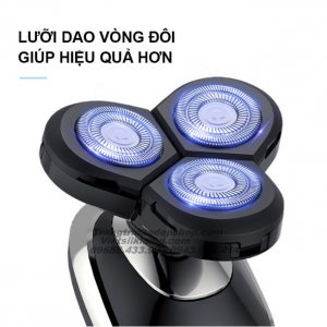 - Cấu trúc 3 lưỡi dao nổi xoay 360 độ giúp vệ sinh mọi vị trí trên mặt