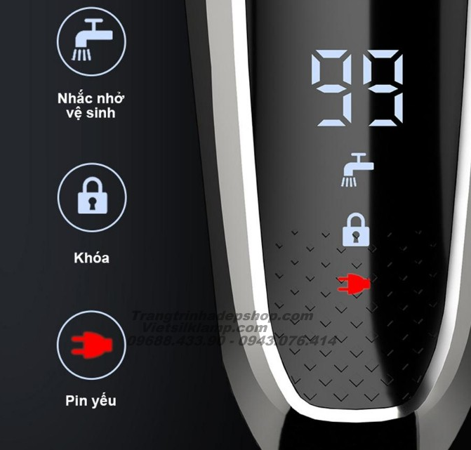 Máy cạo râu LK1290 thiết kế đẹp sang trọng, vừa tay cầm, có đế sạc đứng tiện lợi. Màn hình LED nhắc nhở vệ sinh, pin yếu, rất dễ sử dụng.