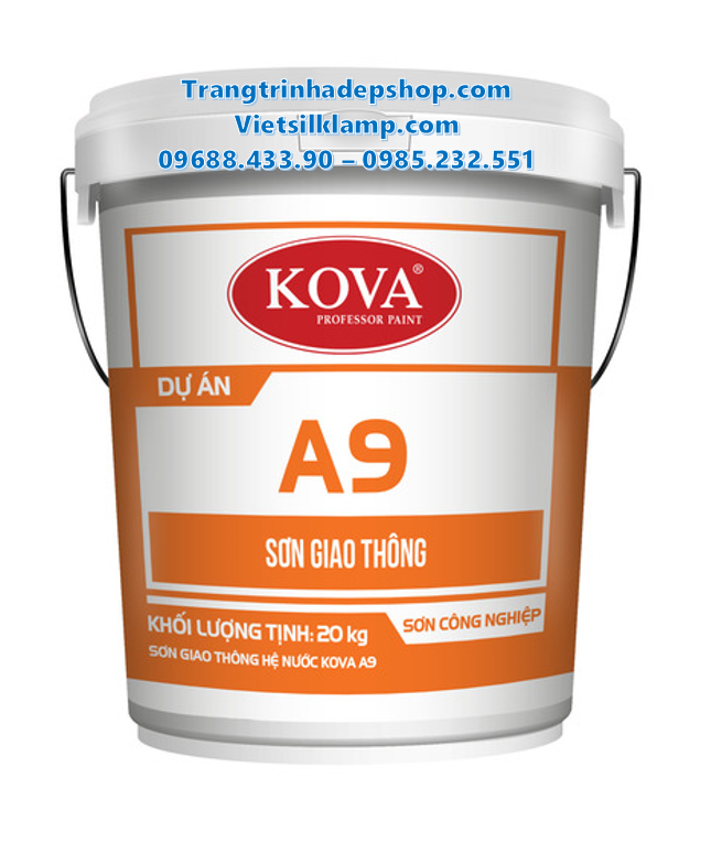 Sơn giao thông hệ nước KOVA A9 là loại sơn giao thông công nghệ tiên tiến hệ nước, gốc Acrylic biến tính Silicon tạo ra sơn giao thông có độ bền cao hơn hẳn sơn gốc Alkyd hệ dung môi hiện hành. Đặc biệt với đặc tính hệ nước và khả năng bám dính rất tốt (theo tiêu chuẩn Mỹ), Sơn giao thông hệ nước KOVA A9 có phản quang đạt tiêu chuẩn để thi công cho đường băng sân bay và thực tế đã được sử dụng ở rất nhiều nhà xưởng, bãi đậu xe, sân bay tại Việt Nam, Lào.